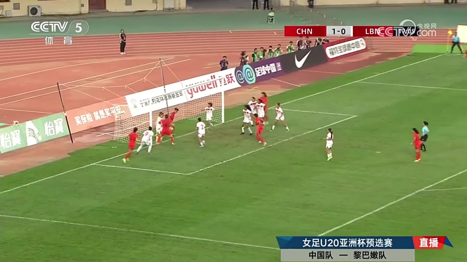 黎巴嫩女足门将防角球失误刘玲门前将球碰进